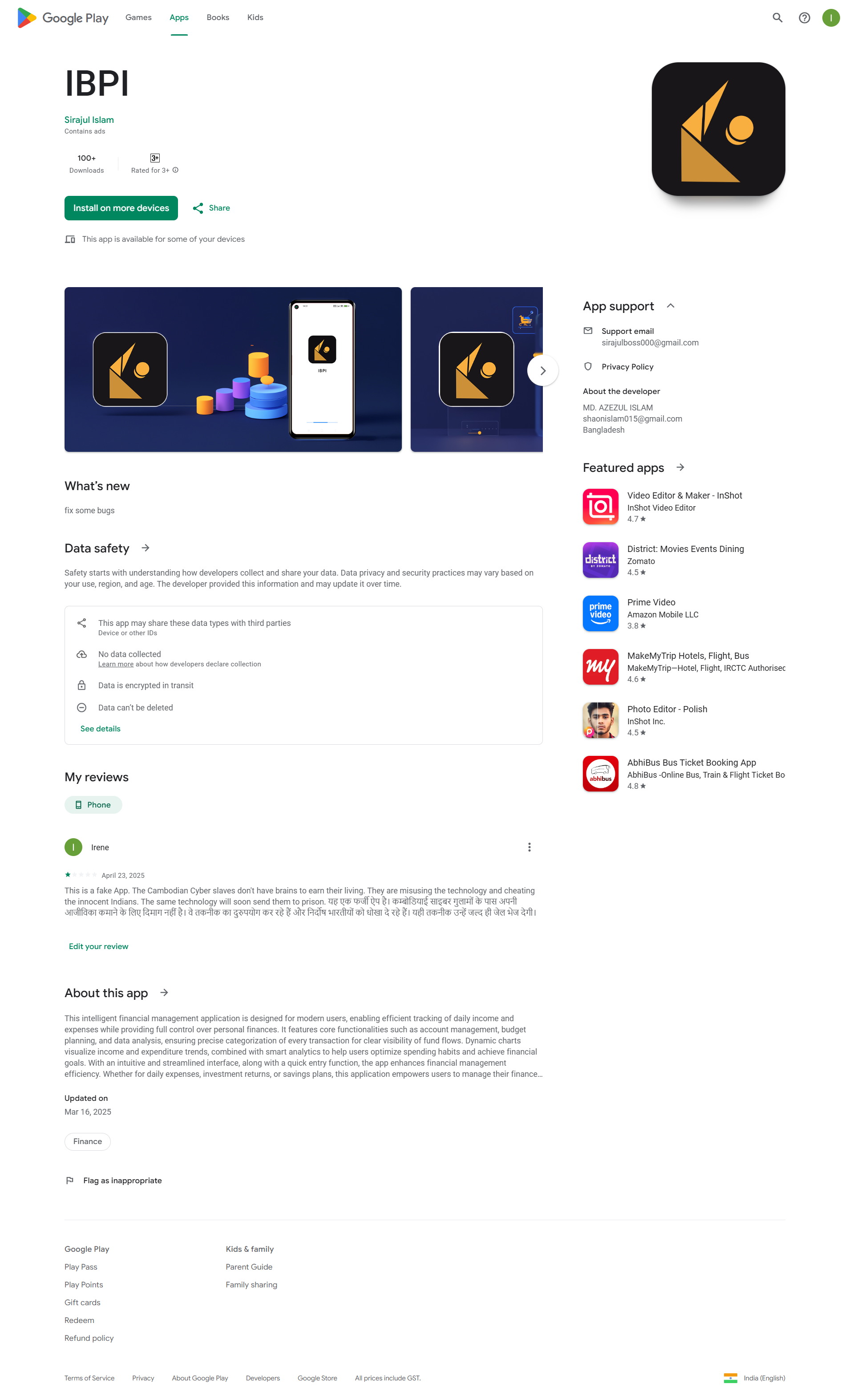 Fake Developer: https://play.google.com/store/apps/developer?id=Sirajul+Islam