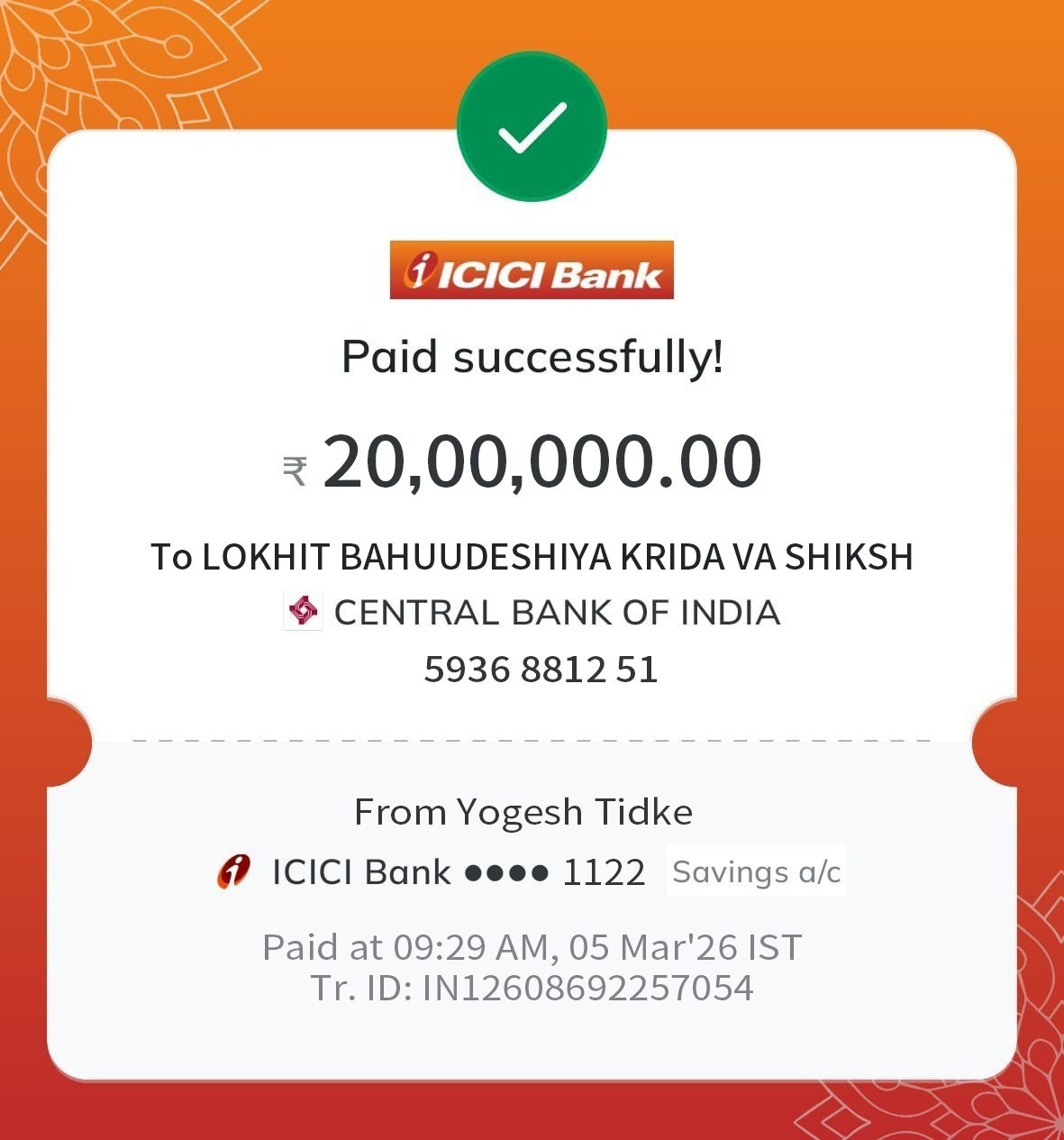Account Name: **Lokhit Bahuudeshiya Krida Va Shiksh**