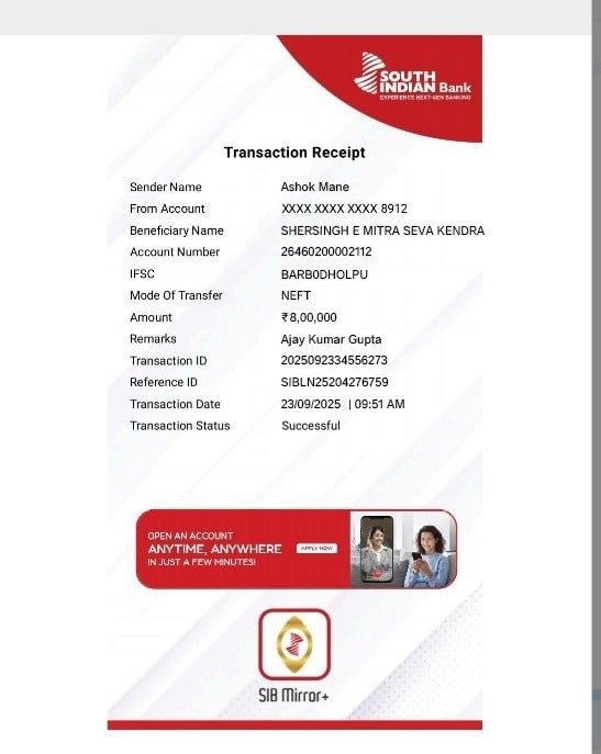 Account Name: **Shersingh E Mitra Seva Kendra**&#x20;